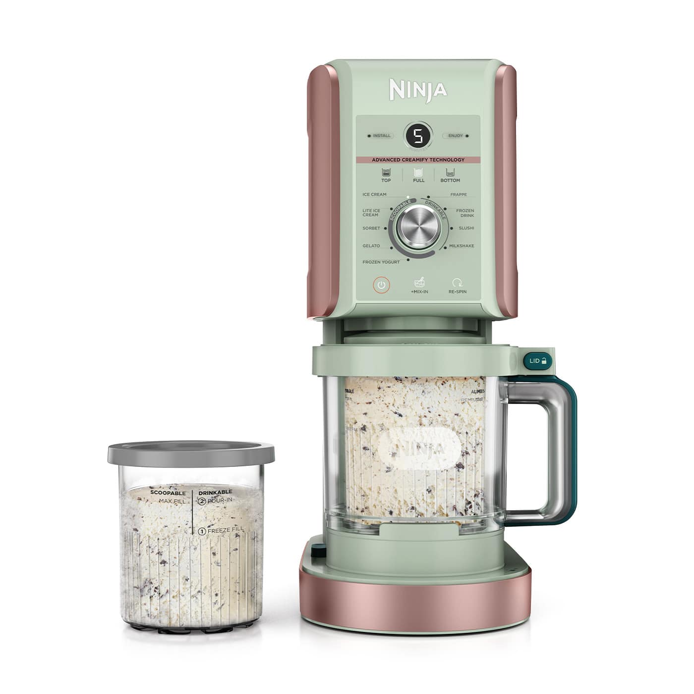 Want an even CREAMier dessert? Choose your preferred texture with the Re-spin function which makes your frozen treat even softer and CREAMier after the first round of processing.