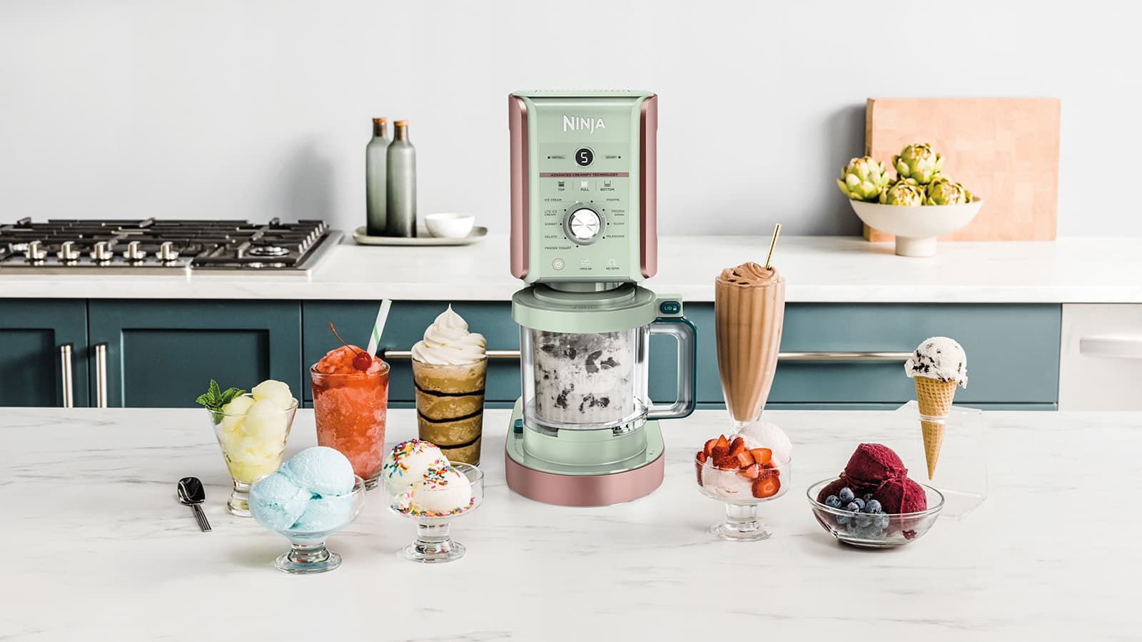 Motor Base with Dual-Drive Motors: Advanced CREAMify Technology turns almost anything into a frozen or creamy treat using 10 One-Touch Programs.