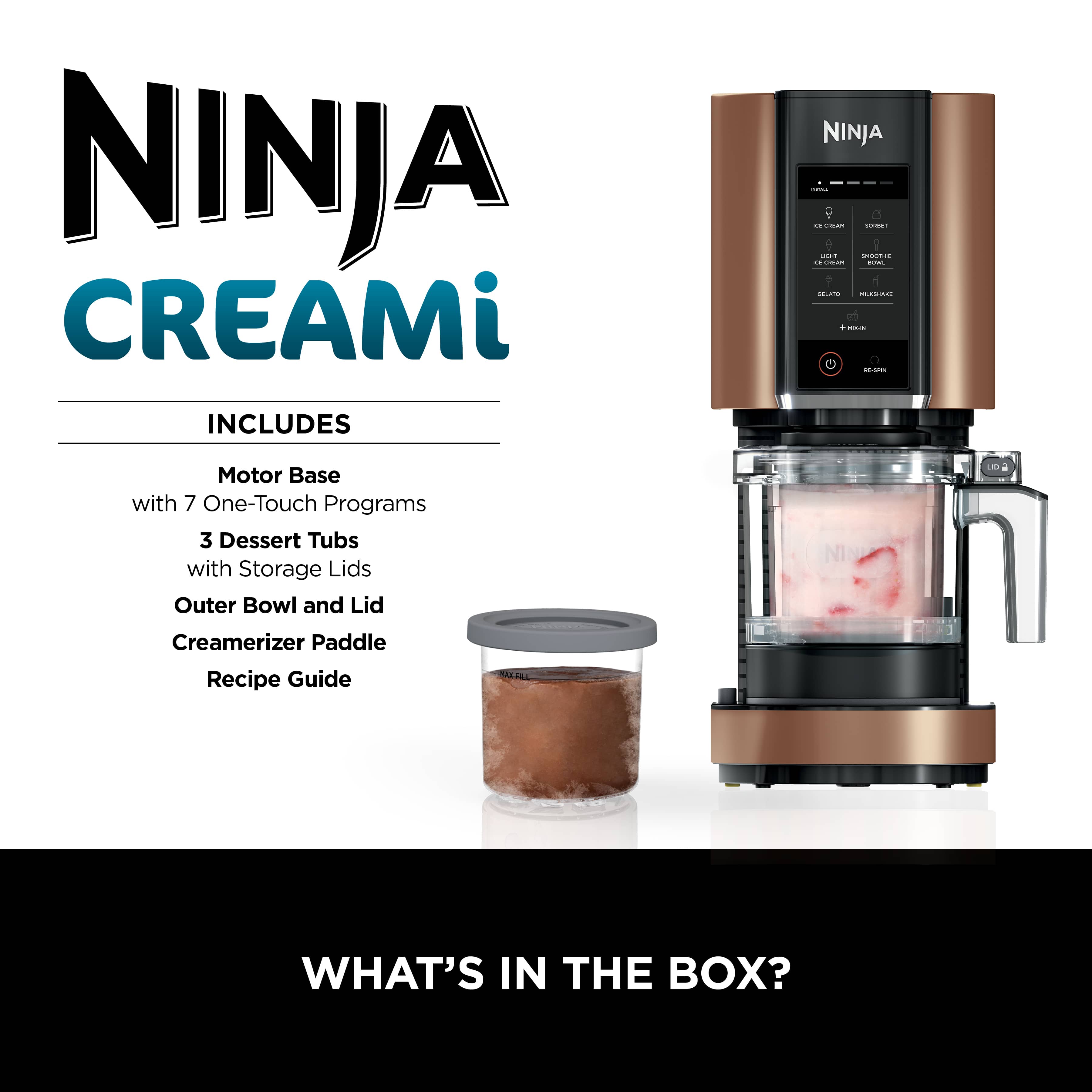 - Ninja CREAMi has 7 preset programs – Ice Cream, Gelato, Sorbet, Smoothie Bowl, Light Ice Cream, Milkshake & Mix-Ins.