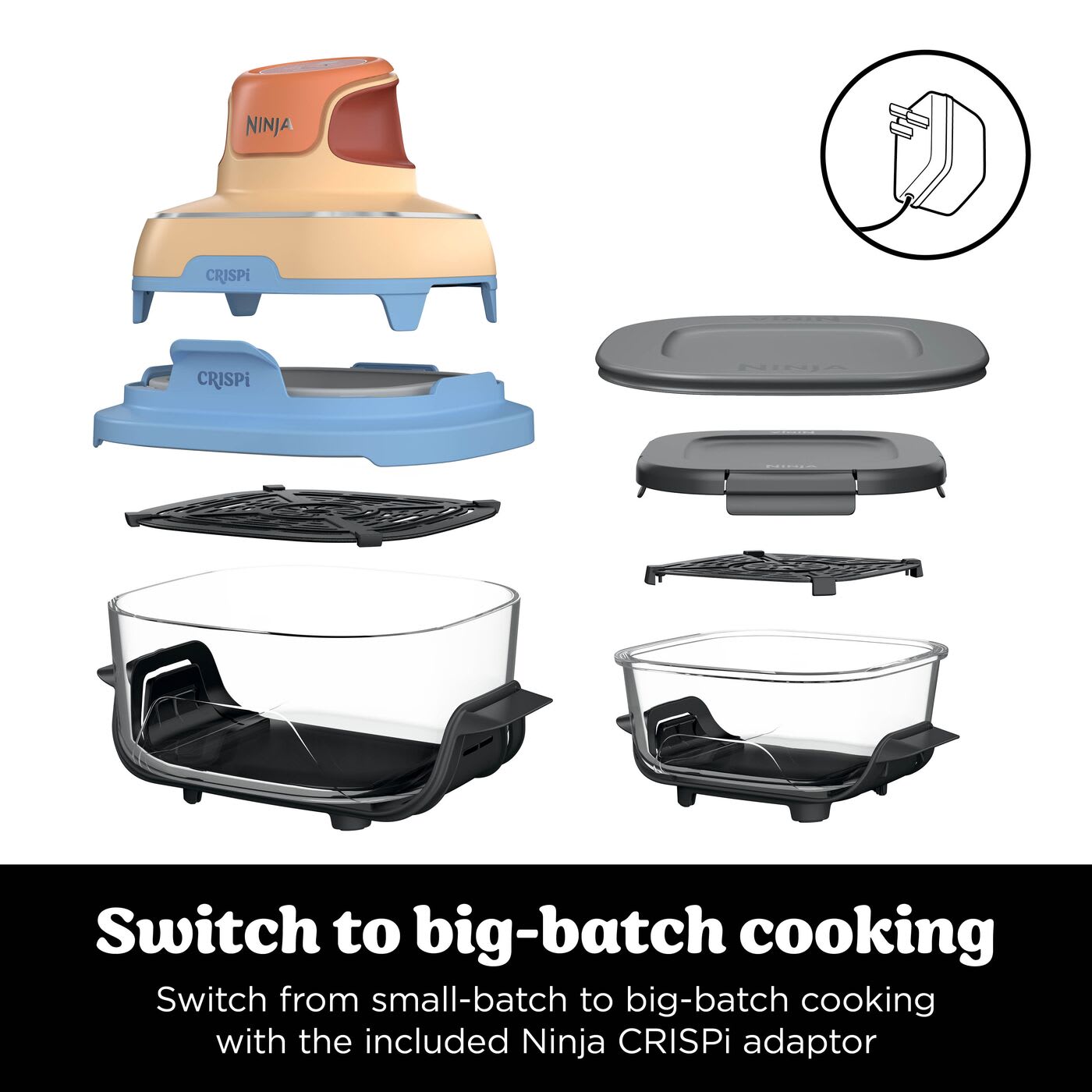 Meet the Ninja CRISPi —our revolutionary 4-in-1 portable glass air fryer cooking system that delivers the power of a full-sized air fryer in a sleek, compact design. Whether you're at home, in the office, or on the road, CRISPi makes it easy to enjoy your favourite meals wherever life takes you. With its ultra-portable build and lightweight 1700-watt PowerPod, you can snap it onto one of the included glass containers to whip up everything from family-sized feasts to solo snacks.