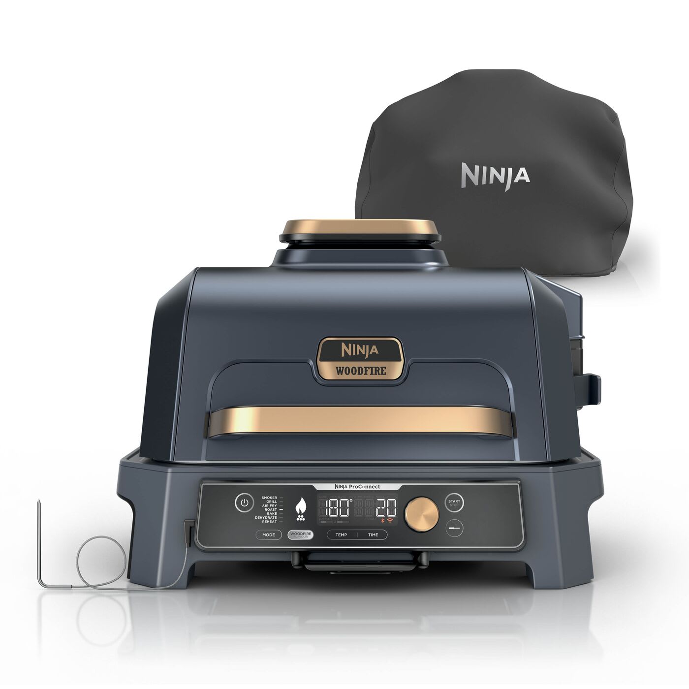 - Built-in probe & 7 functions: BBQ Grill, BBQ Smoker, Air Fry, Bake, Roast, Dehydrate, Reheat