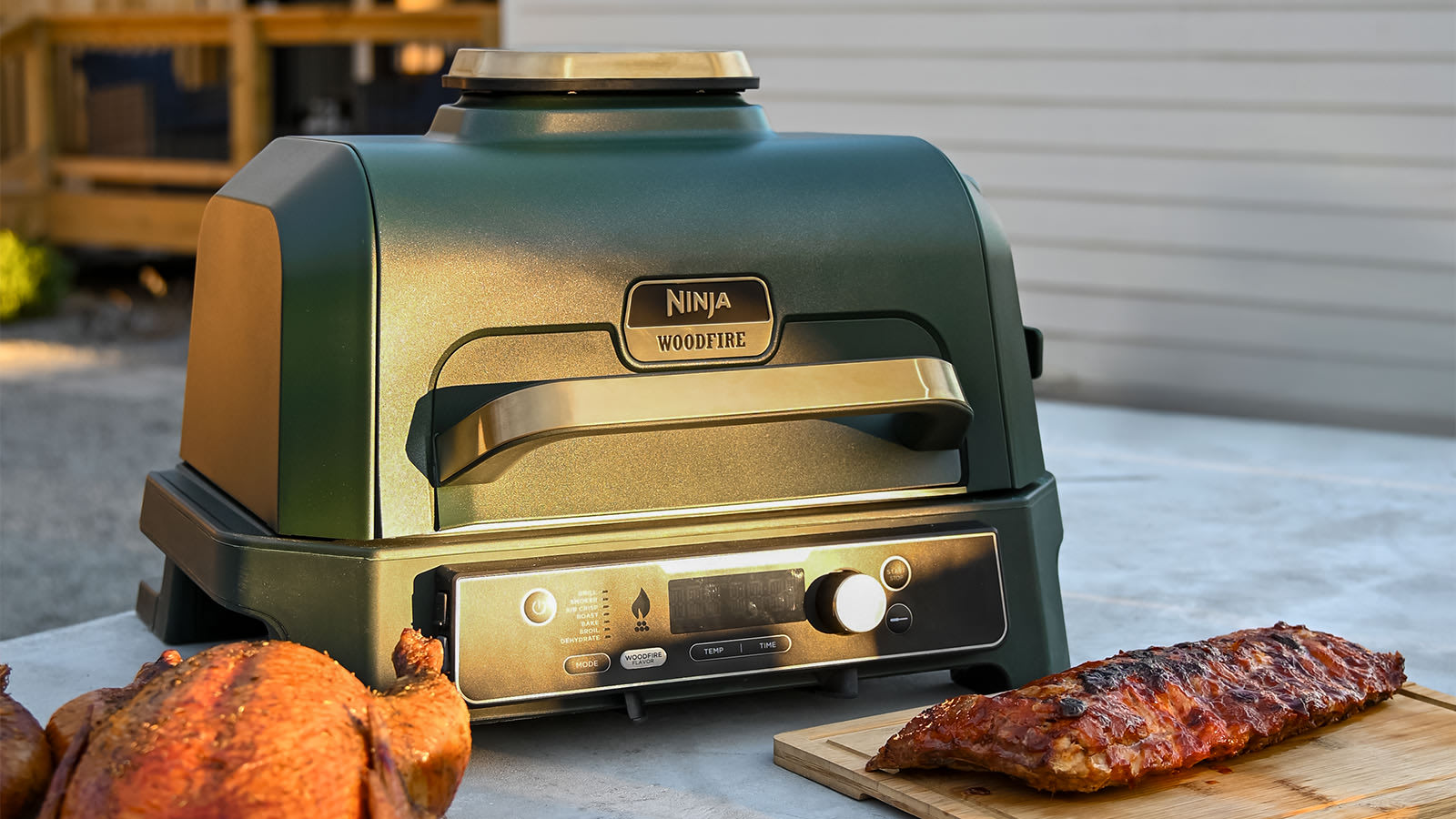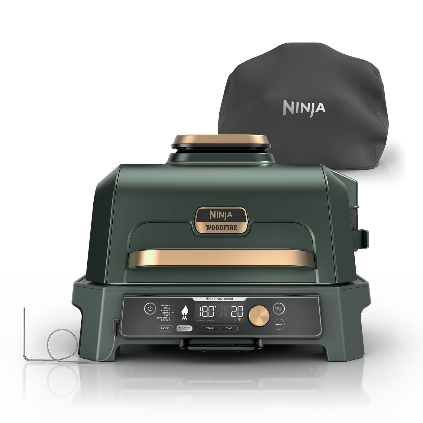 Ninja Woodfire Pro Connect XL Electric BBQ Grill & Smoker with Cover - Green & Gold