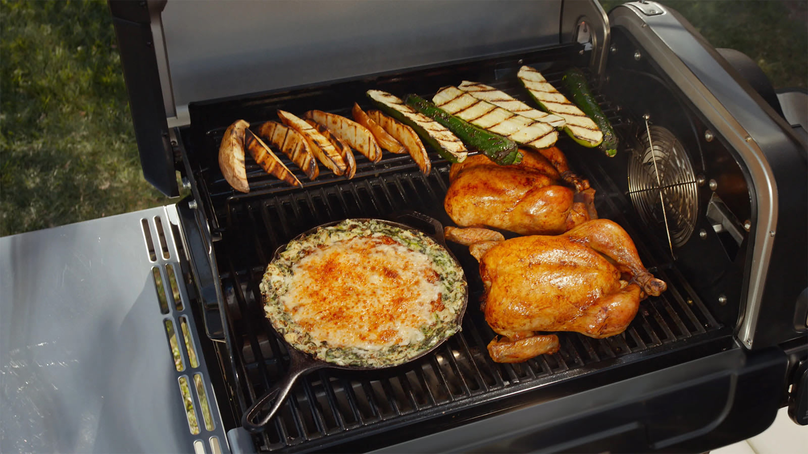 Built to withstand the Great British weather over years of use, it features porcelain-enamelled cast-iron grill grates, a double-walled heavy-duty lid, and durable side tables for prep and plating. Plus, say goodbye to a garden shed full of outdoor grills and cooking tools.